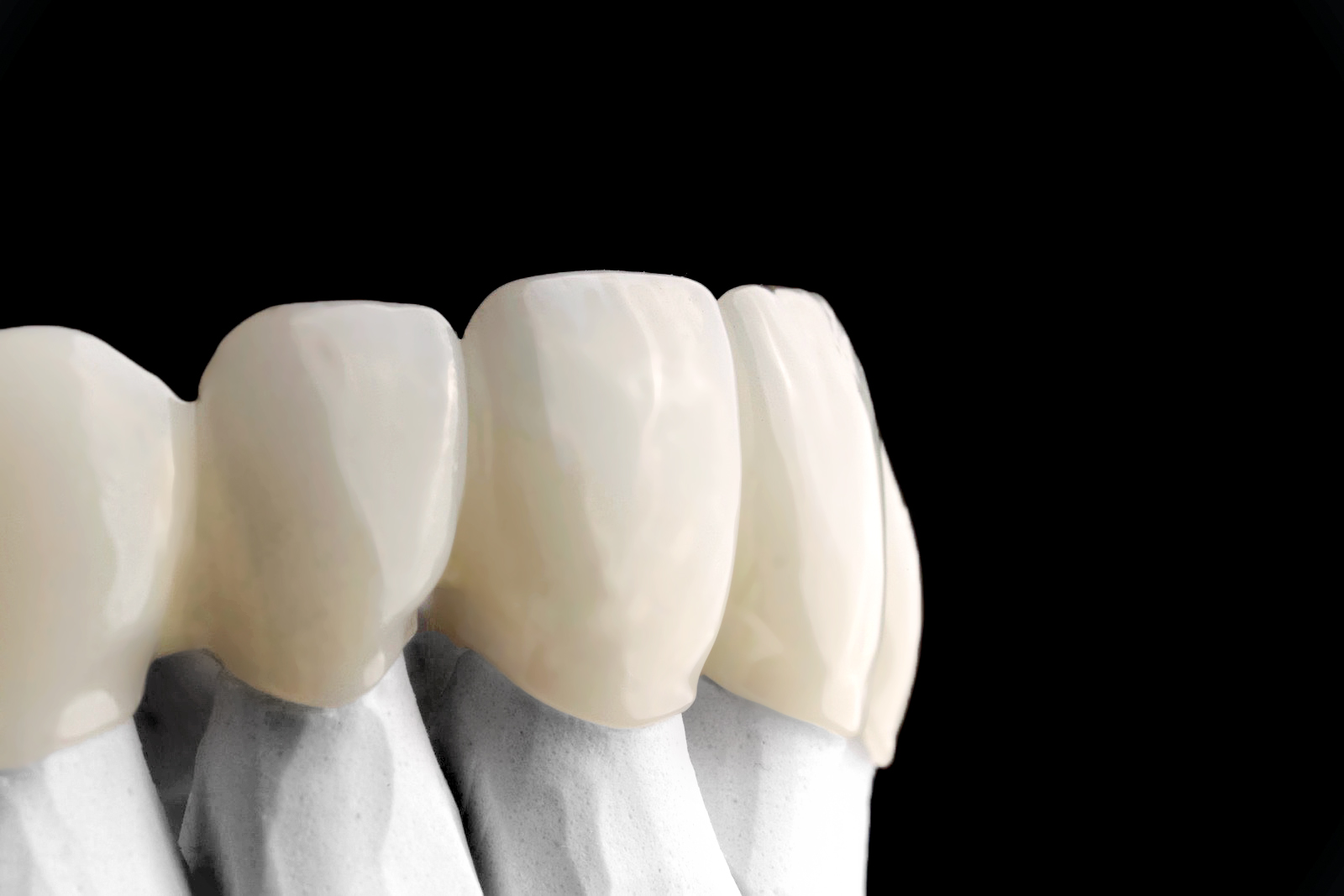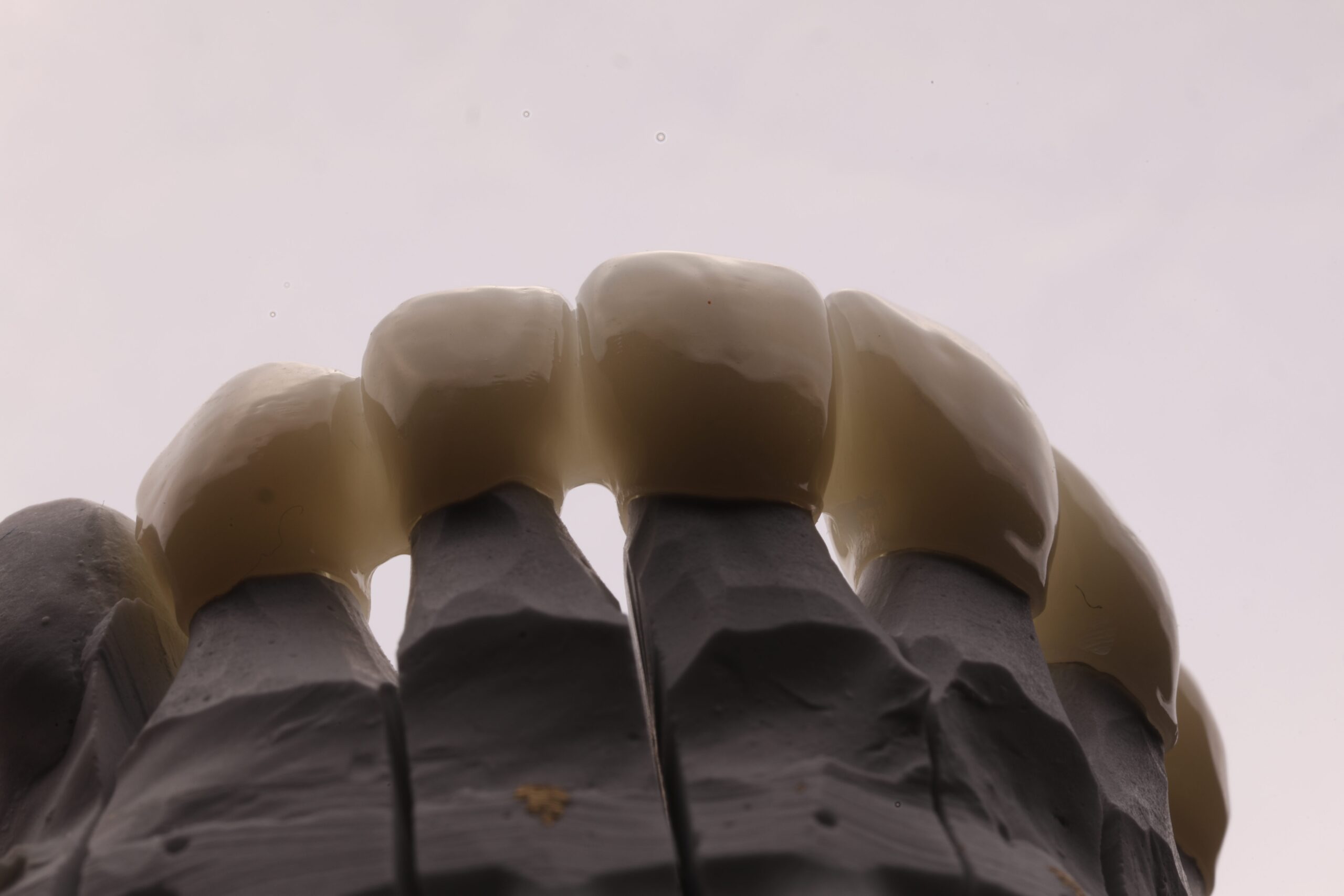 Γέφυρα Ζιρκονίου #14-23. Η ασθενής επιθυμούσε φυσικό αποτέλεσμα με το απόλυτο λευκό. Παρά τους περιορισμούς των δυσχρωματικών κολοβωμάτων, χρησιμοποιήθηκε ζιρκόνιο υψηλής φωτοδιαπερατοτητας και στην συνέχεια έγινε μικρόδιαστρωμάτωση για το βέλτιστο αισθητικό αποτέλεσμα.